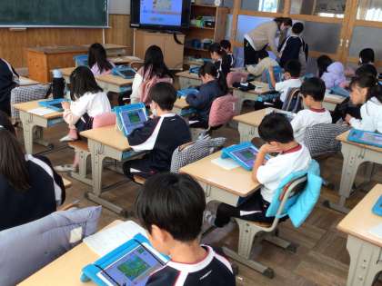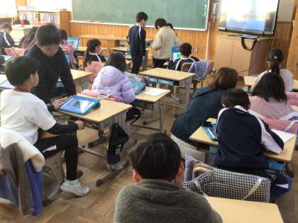 12/10 プログラミング 2年生 公開日 2024/12/10 更新日 2024/12/10 各学年から ICT支援の先生に入ってもらい、プログラミングの授業をしていました。命令を入力し、画面の動物を動かす活動をしました。 2年