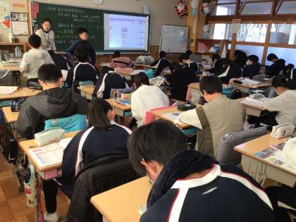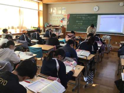 6年生の社会科の学習です。授業の振り返りをノートに書いているところでした。真剣な表情で書き、鉛筆の動く音しかしませんでした。