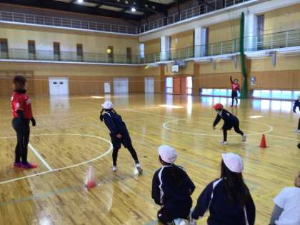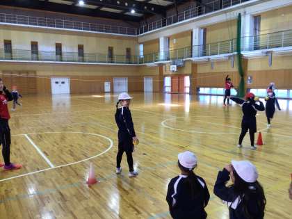 12/19 投げ方教室 2年生 公開日 2024/12/20 更新日 2024/12/20 各学年から トヨタ自動車ソフトボール部 レッドテリアーズによる投げ方練習を、2年生が受けました。ダンスで体をほぐし、ゴムの印より上に投げる練習をしました。投げ方の2つのポイントを教えていただき、それを意識して投げる練習をしました。 2年