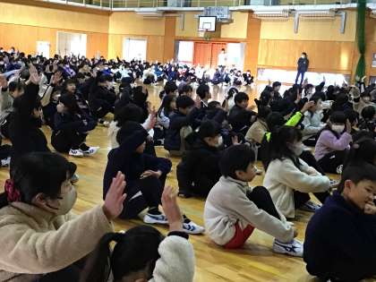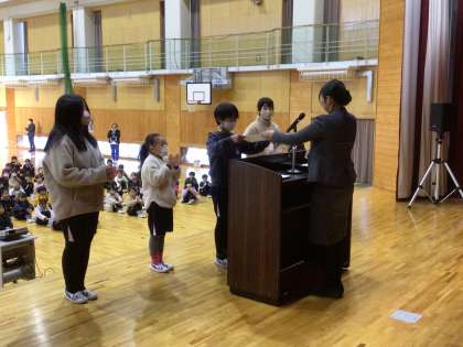 12/23 冬休み前集会 公開日 2024/12/23 更新日 2024/12/23 学校の特色ある活動 冬休み前の集会をしました。校長からは、あいさつについての嬉しい話と、明日からの冬休みにお手伝いやあいさつをしっかりしましょうという話をしました。表彰や、プレゼンコンクールで最優秀賞をとった児童の発表がありました。