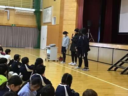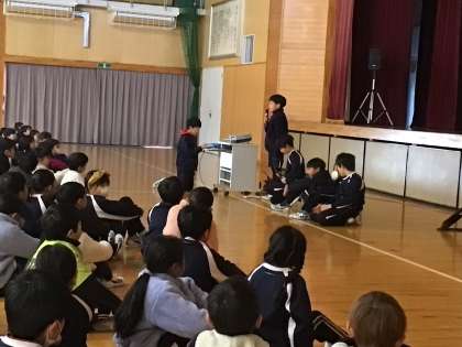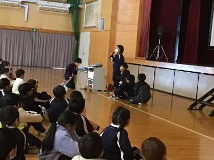 12/23 冬休み前集会 その2 公開日 2024/12/23 更新日 2024/12/23 学校の特色ある活動 冬休みに向けて、生活の決まりや交通安全の話を聞きました。また、4年生の学習をもとに伊保川の名前を付ける話と、6年生が作詞した「令和浄水音頭」のお披露目がありました。ユニークな活動と工夫ある発表に感心しました。 冬休み明け、全校の子どもたちが元気に登校してくるのを楽しみにしています。よいお年をお迎えください。 4年 6年