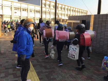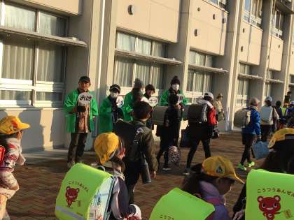 冬休みが明け、今日から学校です。民生委員の皆さんによる「愛のあいさつ運動」が行われました。元気に「おはようございます。」とあいさつができる子が多くいました。中には、民生委員の皆さんに「明けましておめでとうございます。」と言えた子もいました。