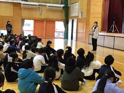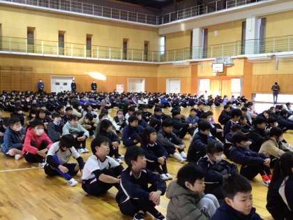 1/7 全校集会 公開日 2025/01/07 更新日 2025/01/07 学校行事 冬休みが明け、全校で顔を合わせました。新しい年を迎え、はりきっているのが伝わってくるような落ち着いた表情で、集中して話を聞くことができました。 1年間のまとめの時期を迎え、一日一日を大切に過ごしていきたいですね。蛇の脱皮のように、ひと回り大きく成長していきたいですね。 行事