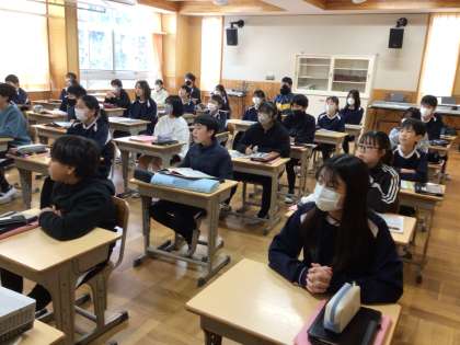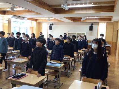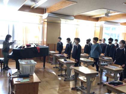 1/8 卒業式の歌 6年生 公開日 2025/01/08 更新日 2025/01/08 各学年から 6年生の音楽の授業です。音を取りながら新しい歌の練習をしていました。卒業式に歌うため、今から少しずつ練習していくとのことでした。もうそんな時期なのですね。 6年