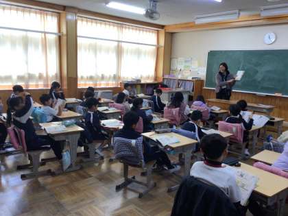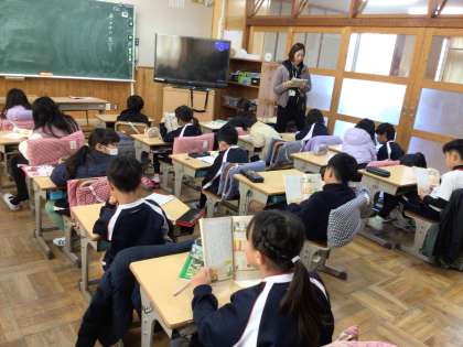 2年生の国語の授業です。教科書に物語が途中まで載っている教材を読んでいました。読書へ誘う教材です。