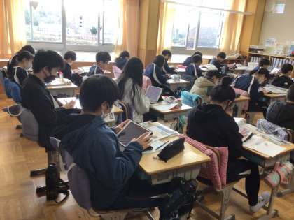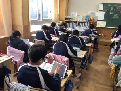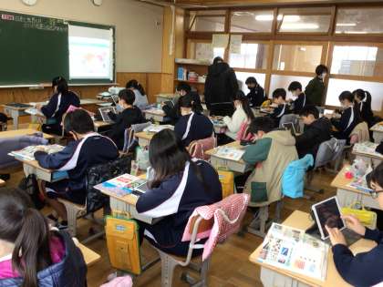 1/16 つながりの深い国 6年生 公開日 2025/01/16 更新日 2025/01/16 各学年から 6年生の社会科の授業です。日本とつながりの深い国を資料で調べて、学習用タブレットに書き込んでいました。 6年