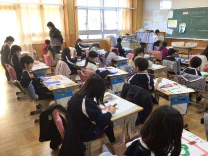 1年生が凧作りをするときに使う絵を描いていました。来週ものづくりサポーターの皆さんに教えていただきながら凧を作るのが楽しみです。