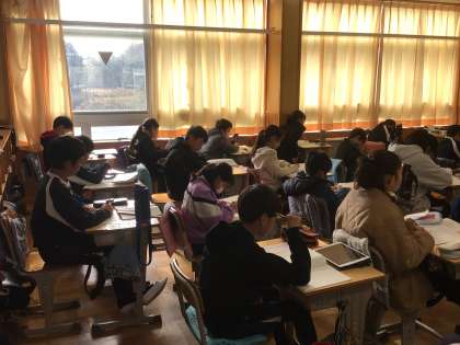 5年生の算数の授業です。今までの復習問題に真剣に取り組んでいました。