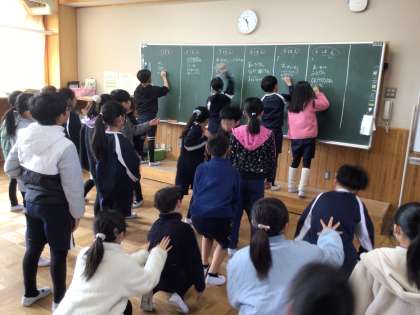 1/20 都道府県名ゲーム 4年生 公開日 2025/01/20 更新日 2025/01/20 各学年から 4年生の社会科の授業です。楽しそうにゲームをしていました。制限時間にいくつ都道府県名が書けるかをグループで競っていました。 4年