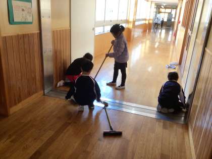 1/20 隅が大事 公開日 2025/01/20 更新日 2025/01/20 お知らせ 清掃の様子です。廊下や階段を掃除している子に、「隅が大事だよ。隅を拭いて」と声をかけると、素直にすぐに隅を掃いたり拭いたりしていました。
