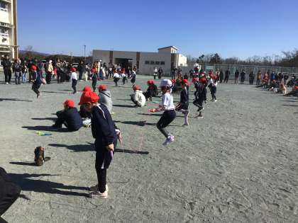 1/25 なわとび大会 1、2年生の部 公開日 2025/01/25 更新日 2025/01/25 学校行事 途中、休憩をして2種目目に挑戦。お家の方にすぐ近くで応援していただき、パワーをいただきました。5、6年生から記録の紙をもらいました。お礼が言えたかな。 1年 2年 行事