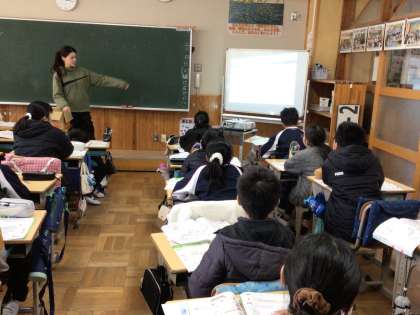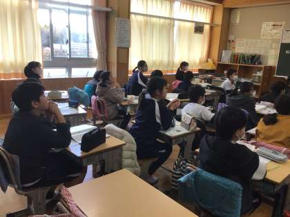 5年生の家庭科の授業です。ミシンの使い方の動画を見ていました。ところどころ動画を止めて、担任が確認や補足説明をしていました。