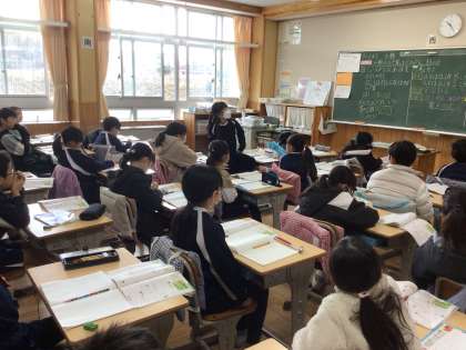 2/5 小数のかけ算 3年生 公開日 2025/02/05 更新日 2025/02/05 各学年から 3年生の算数の授業です。小数のかけ算の学習で「それから」「次に」などの言葉を使って計算の仕方を説明していました。子どもたちが自分の言葉でまとめていました。 3年