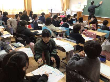 4年生の算数の授業です。直方体の特徴を発表していました。直方体の箱を見ながら確認をしました。