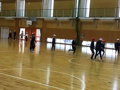 5年生の体育の授業です。アルティメットという新しいゴール型ゲームに取り組んでいました。ディスクを投げたり取り合ったりして、ラインを越えたら点数が入ります。