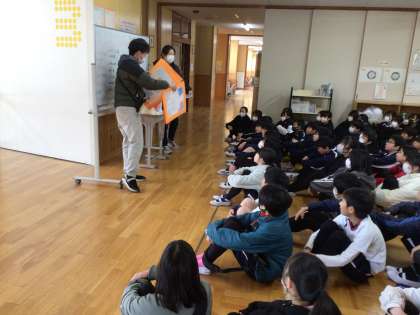 2/12 北小学校アクティブツアーズ 公開日 2025/02/12 更新日 2025/02/12 各学年から 6年生のまごころ学習のまとめとして行う北小アクティブツアーズに向けて、6年生が練習をしていました。グループで案内するので、本番をイメージしてどこでどのように説明をするかを確認していました。 6年