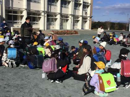 2/13 ミニ通学団会 公開日 2025/02/17 更新日 2025/02/17 学校の特色ある活動 一斉下校時にミニ通学団会を行いました。通学団担当の教員が、登下校の様子を聞いたり、安全面やマナーについて指導したりしました。