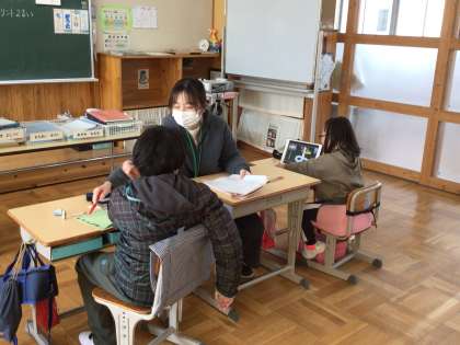おひさま組、にこにこ組、ひだまり組の授業の様子です。個別に学習をしたり、一緒にできるところは黒板も使って一緒に学んだりしています。