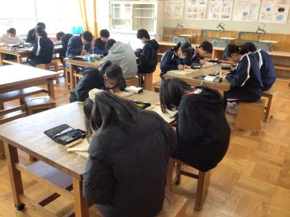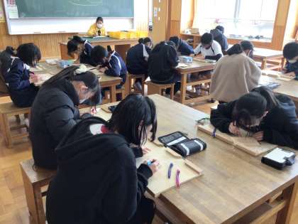 2/19 卒業記念オルゴール 6年生 公開日 2025/02/19 更新日 2025/02/19 各学年から 6年生の図工の授業です。卒業記念に作るオルゴールの、蓋の部分を彫刻刀で彫っていました。小学校の思い出を作品にします。 6年
