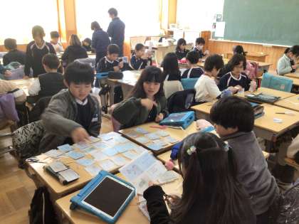 2/19 愛知県カルタ 4年生 公開日 2025/02/19 更新日 2025/02/19 各学年から 4年生の社会科の授業です。今まで学習してきた愛知県のことをカルタにしていました。手作りのカルタで愛着をもって復習できます。 4年
