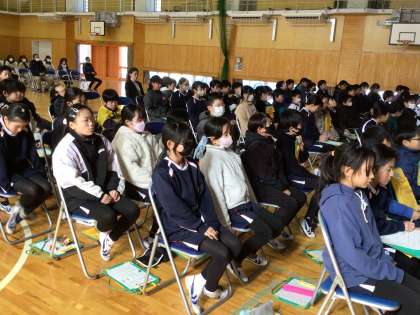2/20 学校保健委員会 公開日 2025/02/20 更新日 2025/02/20 学校行事 学校保健委員会を行い、5年生の子どもたちと保護者が参加しました。本校のスクールカウンセラーが講師を務め、「こころの健康のために」と題して話をしました。ストレスとは何か、どうむきあっていったらよいか、ストレスの解消の仕方など学習しました。 行事