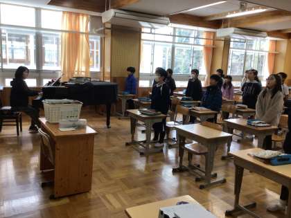 4年生の音楽の授業です。卒業式で歌う歌の練習をしていました。気持ちのこもった美しい声に、胸がじんとしました。