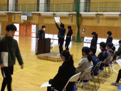 6年生の卒業式練習の様子です。今日は初めて証書授与の練習をしました。