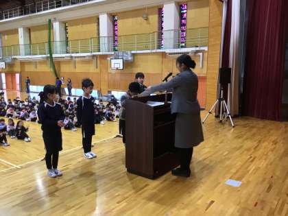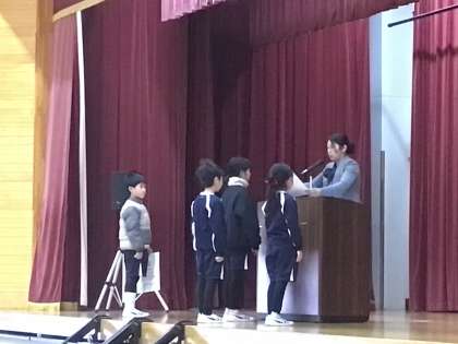 3/10 表彰 公開日 2025/03/10 更新日 2025/03/10 お知らせ 全校集会で後期の表彰を行いました。賞に入った子は名前を呼ばれて立ちます。数が多いものについては、代表者が受け取る形でした。様々なコンテストで賞に選ばれた子どもたち、おめでとうございます。