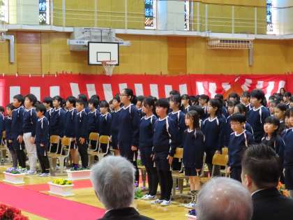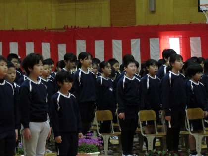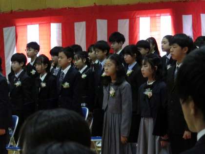 3/19 送る言葉と歌 公開日 2025/03/19 更新日 2025/03/19 学校行事 在校生4、5年生による送る言葉と歌です。6年生への感謝の気持ち、別れを惜しみつつ応援する気持ちを、言葉と歌に込めました。卒業生はしっかり聞いて受け止めました。 行事