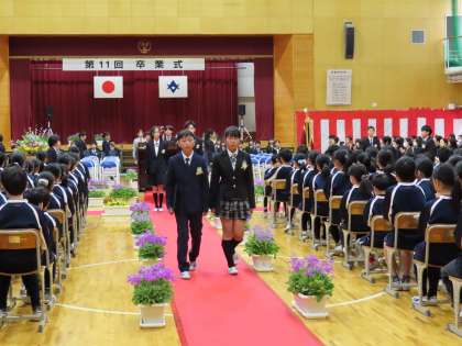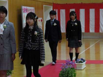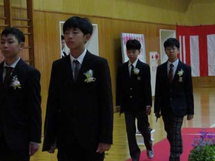 校歌を全員で歌い、卒業生の退場の場面です。拍手の中、一人一人ゆっくりと胸を張って進みました。