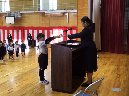 学年ごとに修了証を受け取りました。どの子も1年間よく頑張り、いろいろなことができるようになりましたね。