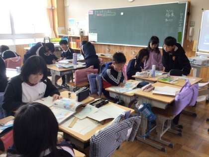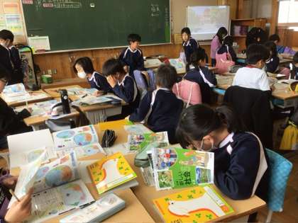 5年生社会「世界の中の国土」の学習の様子です。地図を見てわかることをまとめていました。自然に友達と考えを共有する姿が見られました。