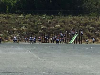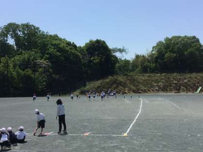 1年生体育科の学習の様子です。目標に向かって走る練習をしていました。その後、遊具の使い方の学習をし、楽しく遊んでいました。清々しい天気で、運動すると気持ちがよいです。水分補給をし、熱中症にも気を付けながら、今後も取り組んでいきます。