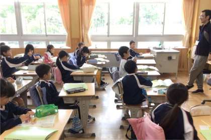 社会科の学習の様子です。地図記号の学習をしていました。「警察署は、むかし警察官が持っていた長い警棒を斜めに交差させた形を記号にしたものだよ」と先生から由来を聞いていました。記号のできた由来を知ると楽しく学べそうです。