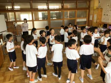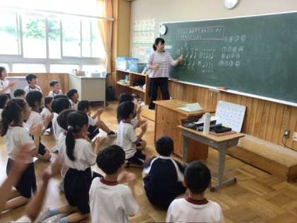 音楽の授業では、リズムに合わせて手をたたきながら拍を感じ、楽しく活動に取り組んでいました。