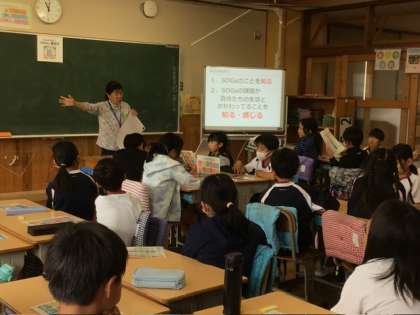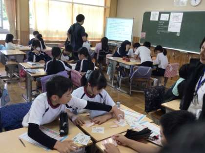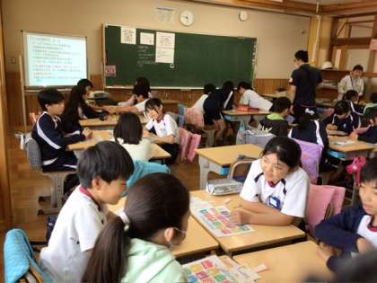 総合的な学習の時間では、豊田市未来都市推進課からファシリテーターをお招きし、豊田市のSDGsについての取り組みについて学びました。グループ活動では、カードに提示された内容を数値で予想するゲームを通して、楽しく理解を深めることができました。