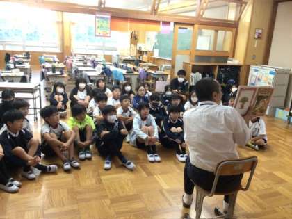 雨の日にもかかわらず、さわやかな気持ちで始まった読み聞かせの時間の様子です。絵本に夢中になって聞き入る子や笑顔で楽しんでいる子など、さまざまな表情が見られました。子どもたちの楽しそうな様子を見て、心が温まるひとときでした。ボランティアの皆様、ありがとうございました。