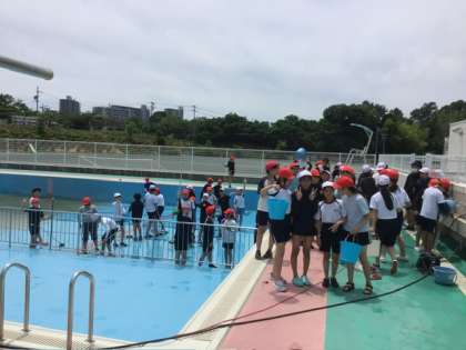 6年生がプール掃除をしてくれました。おかげさまでプールが見違えるほどきれいになり、来週のプール開きも予定通り行えそうです。6年生の皆さん、ありがとうございました。