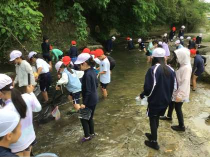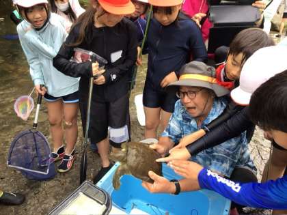 午後からは、阿部氏に実際の川へご同行いただきました。川での魚の捕まえ方や、魚の種類について実演を交えながら教えていただき、楽しいひとときを過ごしました。川の自然と生き物の魅力を身近に感じる、貴重な機会となりました。