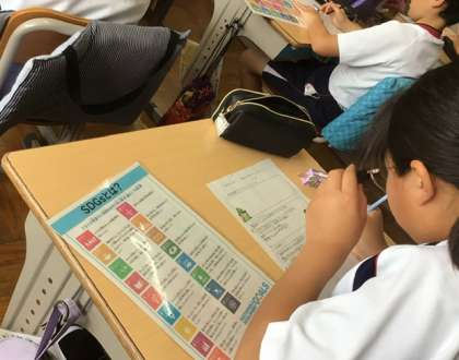 総合的な学習の時間では、講師をお招きしてSDGsについて学びました。講義ではリサイクル、川の環境保全、そして絶滅危惧種など、豊田市に関わるテーマについて深く考えました。