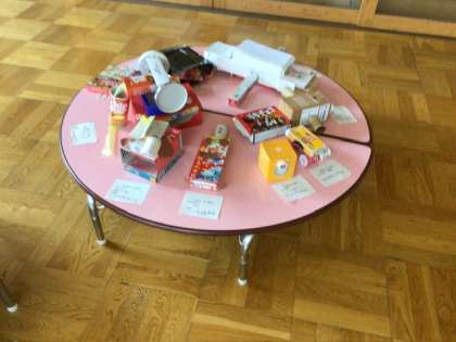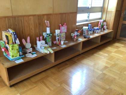 図画工作科「はこでつくったよ」の学習の様子です。箱を積んだり並べたりして感じたこと、想像したことから、表したいことを見付け、作品作りに取り組みました。保護者の皆様には、家庭での箱集めにご協力いただき、ありがとうございました。