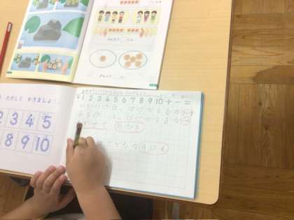 1年生では、算数の授業で学んだ内容を振り返りながらノートに書きまとめる活動も始まりした。この活動では、これまで学んだ操作や考えたことを、自分の言葉で整理し表現する練習をしています。自分の考えを言葉や絵で表現することで、自分の学びを振り返る力を育んでいきます。