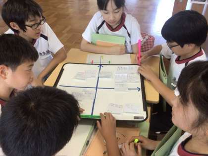 総合的な学習の授業で、SDGsについて学んできたことを、自分たちや浄水北小学校でできることはないかをグループで考えました。