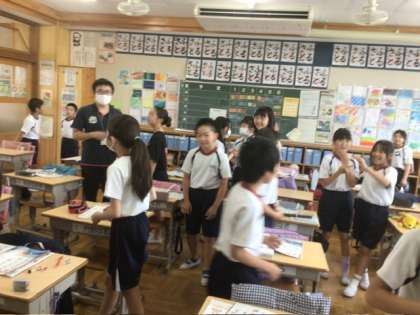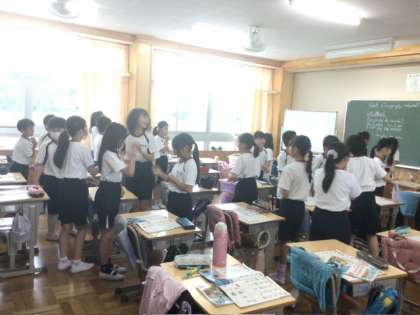 外国語の授業では、ペアを組んで「できること」について友達と伝え合う活動を行いました。ペアを次々と変えながら、楽しそうにコミュニケーションを取っていました。