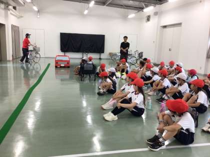 交通安全教室では交通公園を訪れ、自転車の乗り方について学びました。家庭で自転車に乗る際には、今日の学びを活かし、安全に心がけてほしいと思っています。