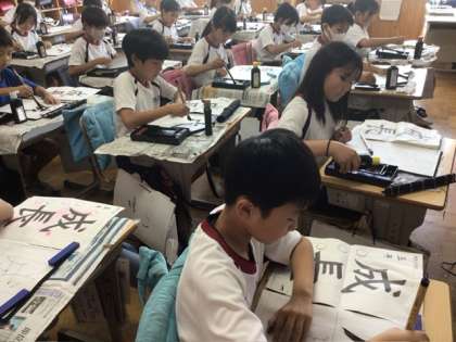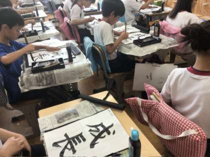 書写の授業で「成長」という文字を練習していました。筆順と字形に注意を払いながら、集中して取り組んでいました。