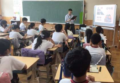 外部から講師をお招きし、租税教室を開催しました。税金の使い道や税金がない場合の生活への影響について、動画や資料を活用して分かりやすく教えていただきました。