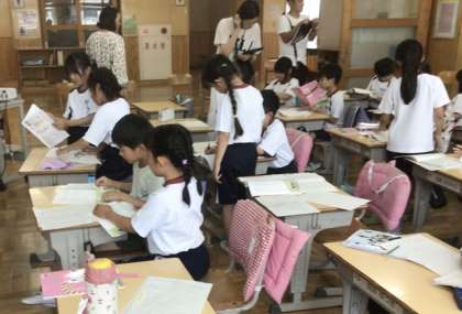 国語「ニャーゴ」の研究授業では、3匹の子ねずみの行動や様子を読み取り、その気持ちについて考える活動を行いました。子どもたちは友達と意見を共有し合いながら、自分の考えを深めていく姿が見られました。