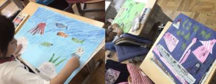 7/7 学習の様子 1年生 公開日 2025/07/07 更新日 2025/07/07 校長室から 図画工作科「やぶいた かたちから うまれたよ」の授業の様子です。紙を破いた形から想像して、表したいものを考えました。クレヨンで絵を加えたり、模様をつけたりして作品を仕上げました。 1年