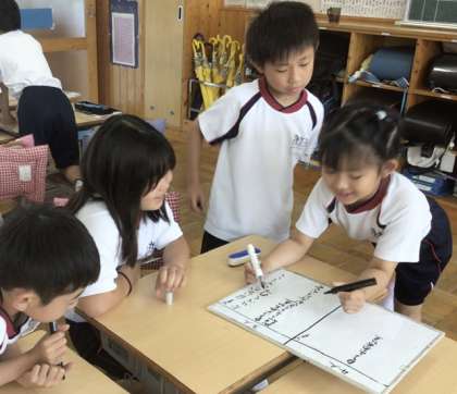 道徳「およげない りすさん」の学習の様子です。友達との関わりを通して、みんなと仲よく遊んだほうが楽しいことに気づき、友達と仲よくしたいという思いをもちました。